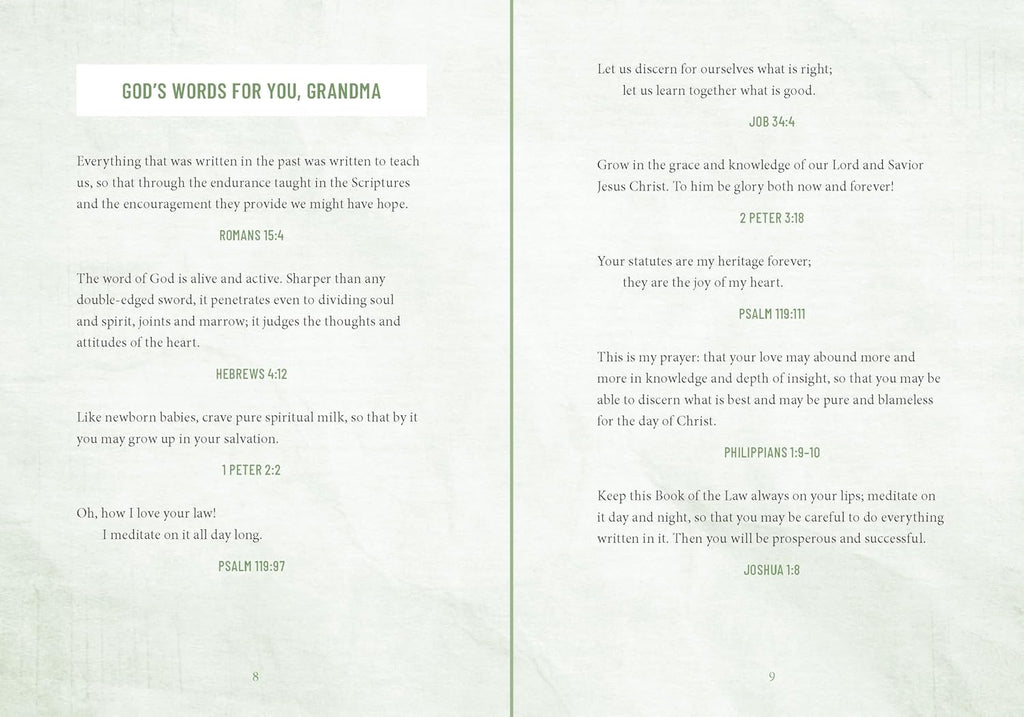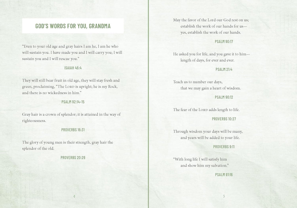 For forty days, immerse yourself in hundreds of carefully selected Bible verses that resonate with your unique role as a grandmother. Each devotion covers vital topics like family, prayer, wisdom, health, legacy, and above all, God's unwavering love. Imagine the joy of reflecting on these themes as you start your day, feeling more connected and spiritually nourished.