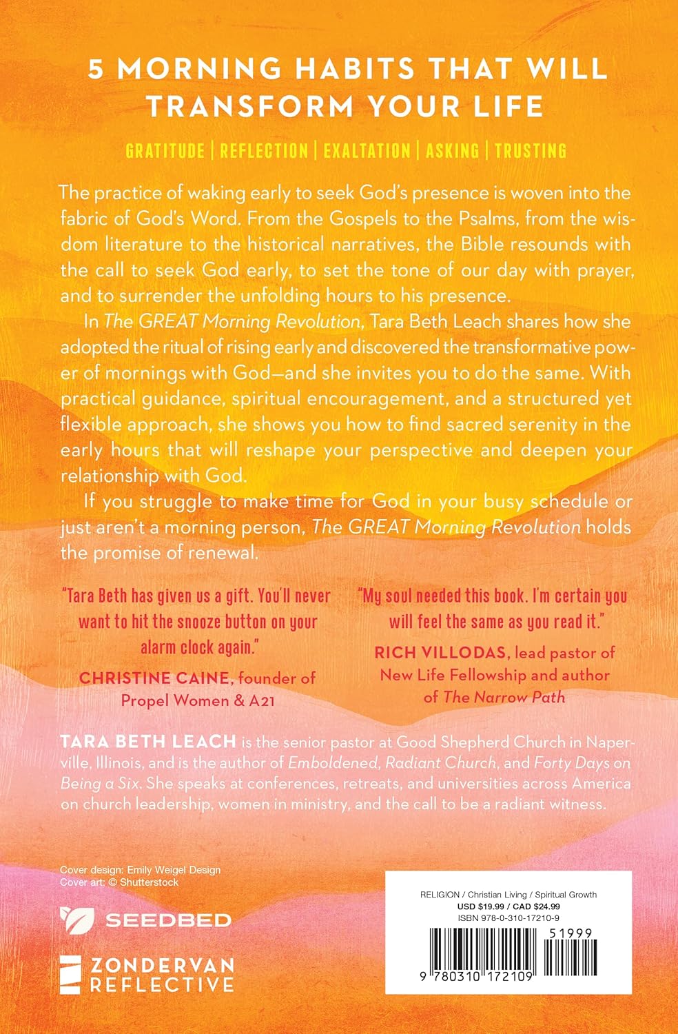 In The GREAT Morning Revolution, Tara Beth Leach shares how she adopted the ritual of rising early and discovered the transformative power of mornings with God--and she invites you to do the same. With practical guidance, spiritual encouragement, and a structured-yet-flexible approach, she shows you how to find sacred serenity in the early hours that will reshape your perspective and deepen your relationship with God.